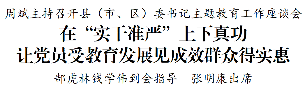 周斌認(rèn)真聽取各縣(市、區(qū))主題教育開展情況和下一步工作計劃,希望大家相互學(xué)習(xí)借鑒,全面自覺對標(biāo)對表,從嚴(yán)從實從細(xì)推進(jìn)各項工作,確保主題教育方向不偏、靶心不移、動作不虛。要堅持“實”字當(dāng)頭,在一體推進(jìn)、增強實效上下真功,在理論學(xué)習(xí)上走深走實,在調(diào)查研究上求真務(wù)實,在檢視整改上真查實改,弘揚傳承“四下基層”優(yōu)良作風(fēng),深入開展“三進(jìn)三解”大調(diào)研,落實好“三對照三排查”要求,邊學(xué)習(xí)、邊對照、邊整改,確保主題教育取得扎實成效。